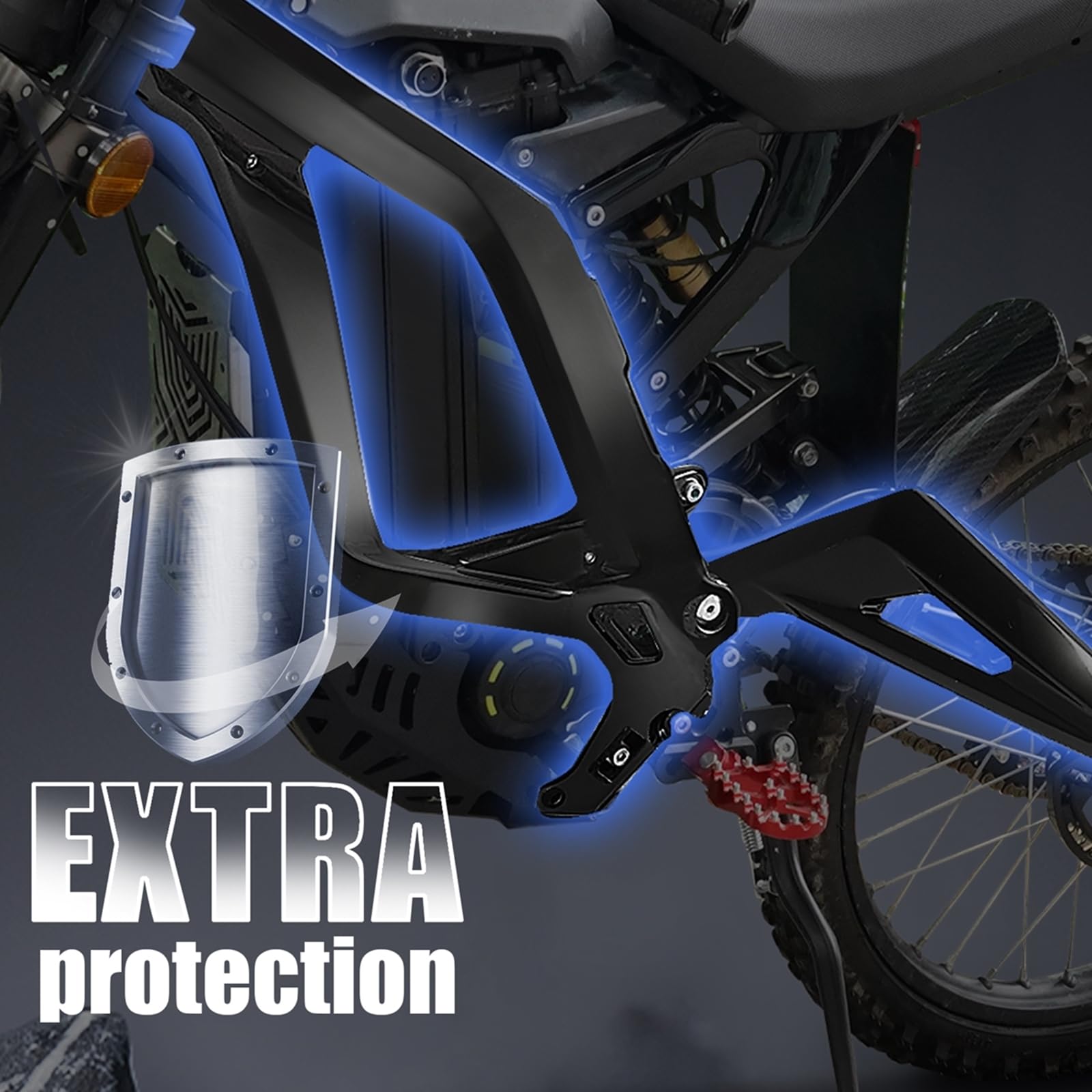 Protect your LBX frame from rocks, debris, and trail damage with our precision-engineered frame guard set. Designed specifically for the Sur-Ron LBX, these guards provide complete coverage of vulnerable frame areas while maintaining the bike's sleek profile.